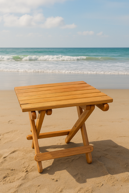 Using the same oak as our H&T Chairs, we custom build two sizes of folding slat tables with easy handle for carrying. These tables are sized perfectly for the height of our beach chairs.